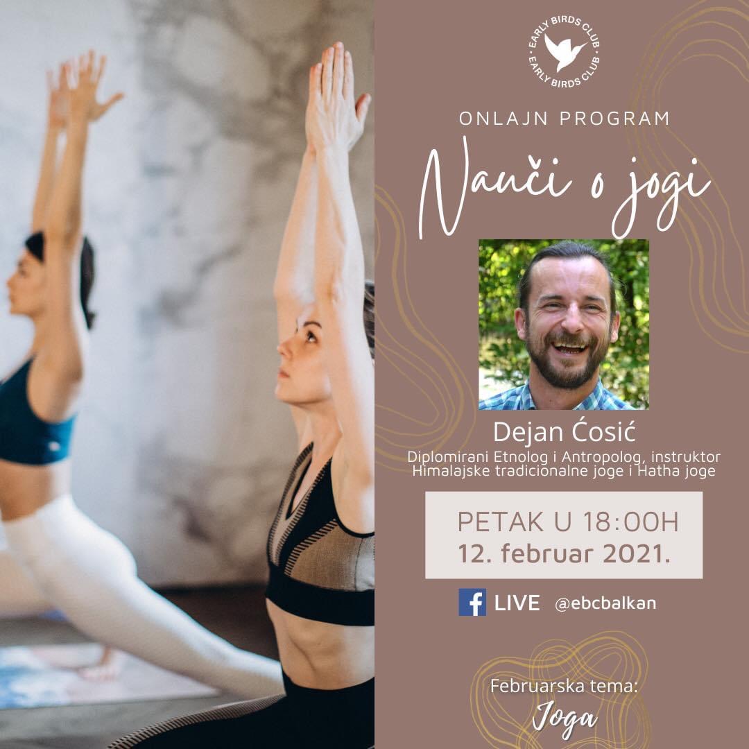 Sa Dejanom, u petak u 18h, uplovićemo malo dublje u temu joge – kako odabrati tip joge koji nama odgovara, kako pravilno praktikovati jogu, da li je ona ista za muškarce i žene, da li je joga samo za one gipke, ili je mogu praktikovati svi, koliko često treba praktikovati jogu itd.