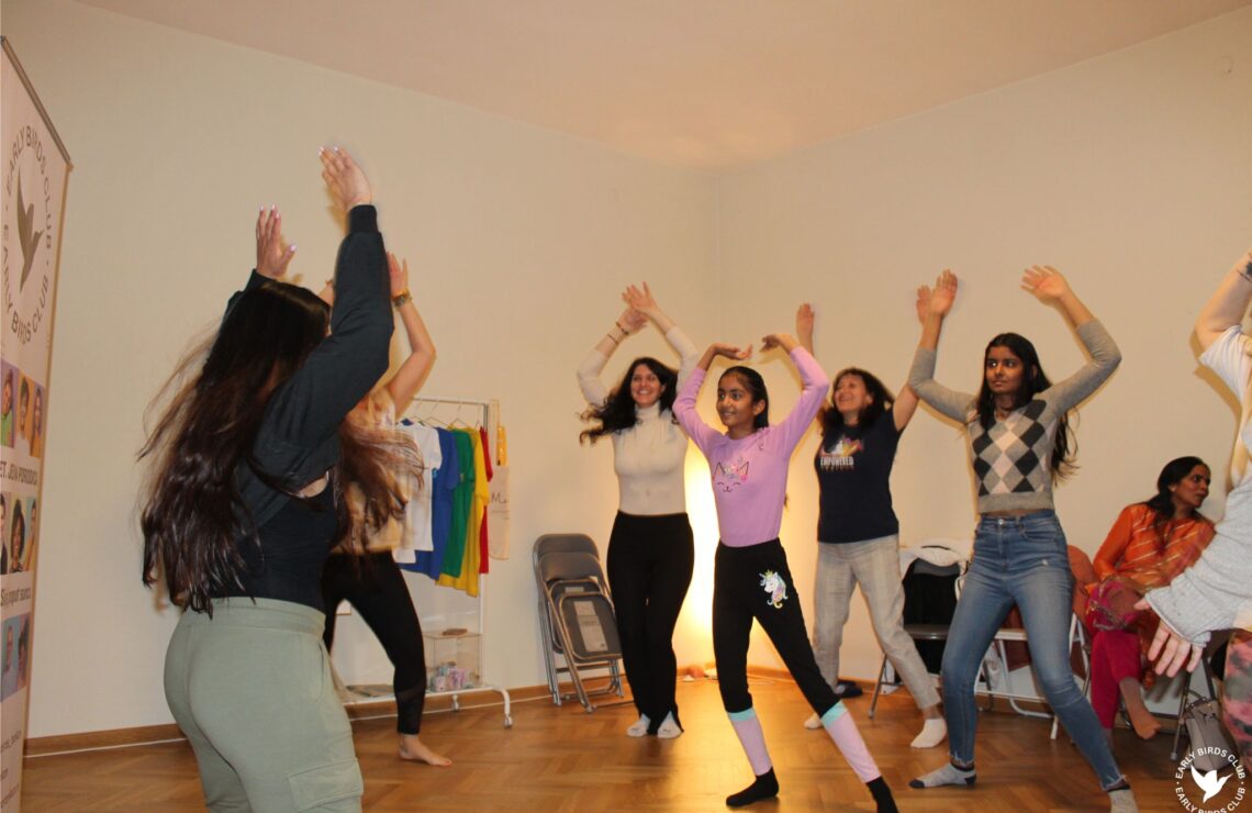 Predsednica Kluba ranoranilaca, Mina Obradović, uvela je učesnike u program, podelivši par reči o Klubu ranoranilaca i Mohanđi Klubu Mladih. Učesnici su ukratko čuli i o Lakšmi Paniker, profesionalnoj plesačici koja u ime pomenute dve platforme vodi ovaj program. Čuli smo o njenom putu sa plesom, kao i o samoj radionici.